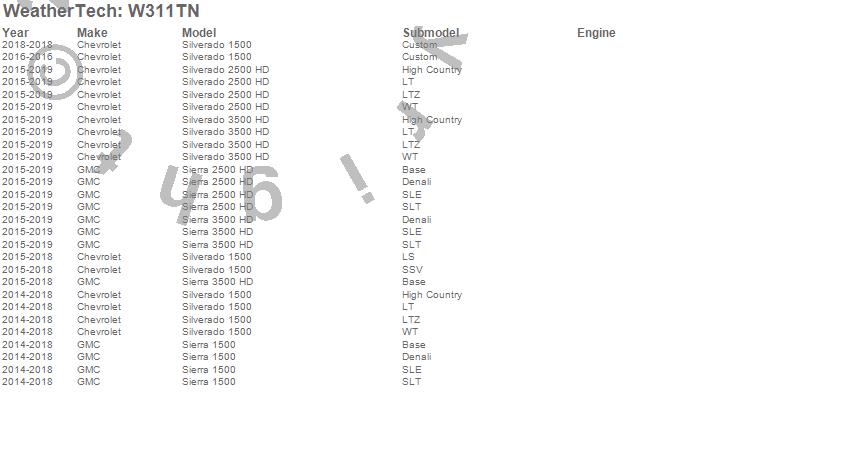 Below is an abbreviated list of applications for the All Weather Floor Mats.Sierra 1500, Sierra 2500 HD, Sierra 3500 HD, Silverado 1500, Silverado 2500 HD, Silverado 3500 HD, Chevrolet, GMC, 2019, 2018, 2017, 2016, 2015, 2014