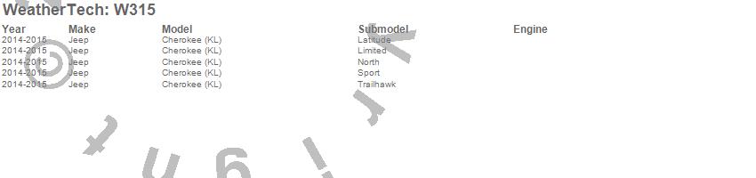 Below is an abbreviated list of applications for the All Weather Floor Mats.Cherokee (KL), Jeep, 2015, 2014