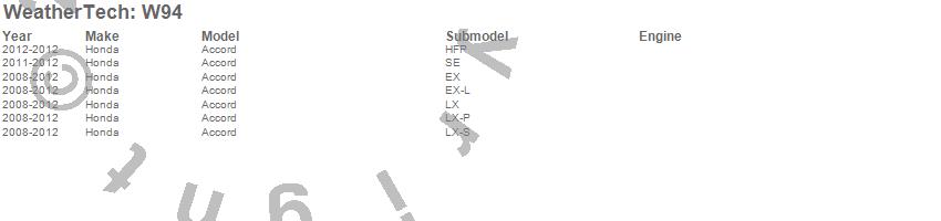 Below is an abbreviated list of applications for the All Weather Floor Mats.Accord, Honda, 2012, 2011, 2010, 2009, 2008