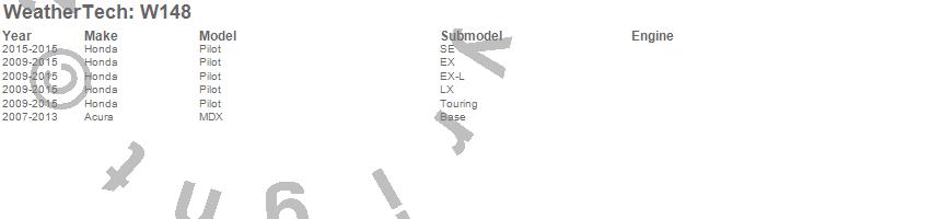 Below is an abbreviated list of applications for the All Weather Floor Mats.MDX, Pilot, Acura, Honda, 2015, 2014, 2013, 2012, 2011, 2010, 2009, 2008, 2007