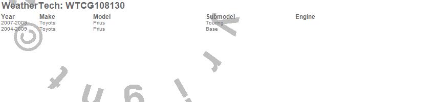 Below is an abbreviated list of applications for the All Weather Floor Mats.Prius, Toyota, 2009, 2008, 2007, 2006, 2005, 2004