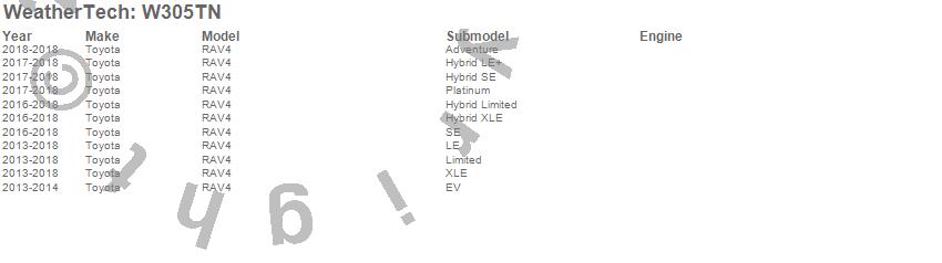 Below is an abbreviated list of applications for the All Weather Floor Mats.RAV4, Toyota, 2018, 2017, 2016, 2015, 2014, 2013