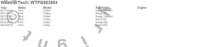 Below is an abbreviated list of applications for the All Weather Floor Mats.C-Max, Ford, 2018, 2017, 2016, 2015, 2014, 2013