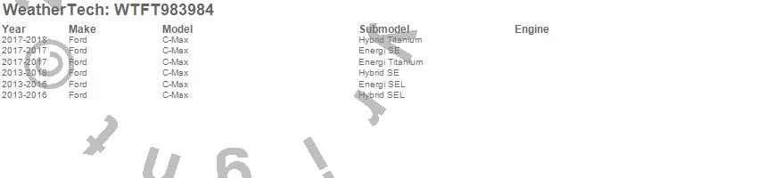 Below is an abbreviated list of applications for the All Weather Floor Mats.C-Max, Ford, 2018, 2017, 2016, 2015, 2014, 2013