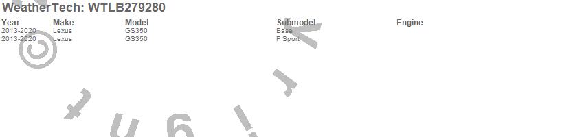Below is an abbreviated list of applications for the All Weather Floor Mats.GS350, Lexus, 2020, 2019, 2018, 2017, 2016, 2015, 2014, 2013