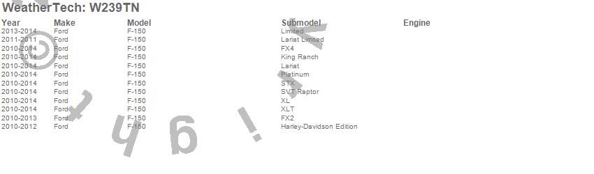 Below is an abbreviated list of applications for the All Weather Floor Mats.F-150, Ford, 2014, 2013, 2012, 2011, 2010