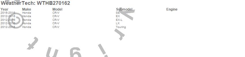 Below is an abbreviated list of applications for the All Weather Floor Mats.CR-V, Honda, 2016, 2015, 2014, 2013, 2012