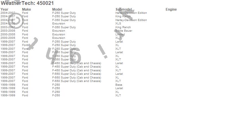 Below is an abbreviated list of applications for the FloorLiner DigitalFit.Excursion, F-250, F-250 Super Duty, F-350 Super Duty, F-450 Super Duty, F-550 Super Duty, Ford, 2007, 2006, 2005, 2004, 2003, 2002, 2001, 2000, 1999