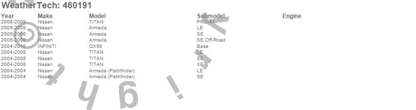 Below is an abbreviated list of applications for the FloorLiner DigitalFit.Armada, Armada (Pathfinder), QX56, TITAN, INFINITI, Nissan, 2010, 2009, 2008, 2007, 2006, 2005, 2004