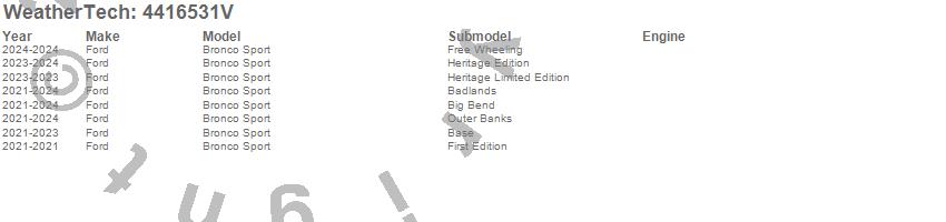 Below is an abbreviated list of applications for the FloorLiner DigitalFit.Bronco Sport, Ford, 2025, 2024, 2023, 2022, 2021
