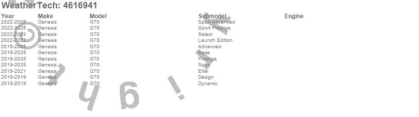 Below is an abbreviated list of applications for the FloorLiner DigitalFit.G70, Genesis, 2026, 2025, 2024, 2023, 2022, 2021, 2020, 2019