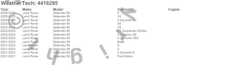 Below is an abbreviated list of applications for the FloorLiner DigitalFit.Defender 90, Land Rover, 2025, 2023, 2022, 2021