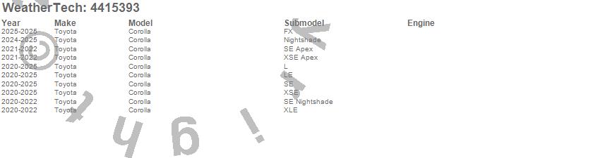 Below is an abbreviated list of applications for the FloorLiner DigitalFit.Corolla, Toyota, 2026, 2025, 2024, 2023, 2022, 2021, 2020