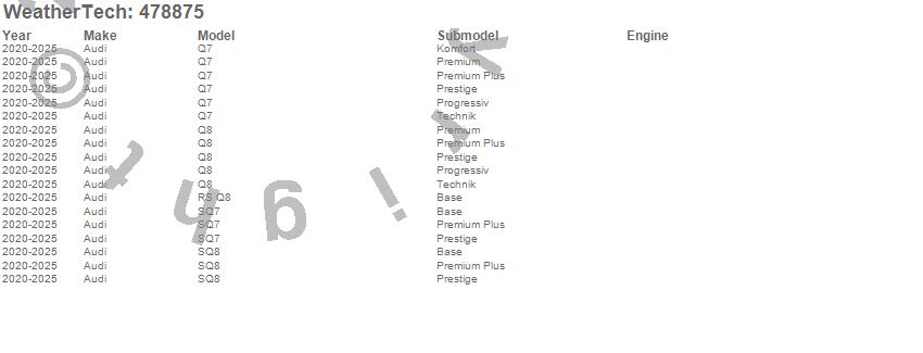 Below is an abbreviated list of applications for the FloorLiner DigitalFit.Q7, Q8, RS Q8, SQ7, SQ8, Audi, 2026, 2025, 2024, 2023, 2022, 2021, 2020