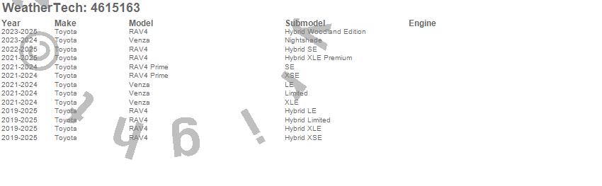 Below is an abbreviated list of applications for the FloorLiner DigitalFit.RAV4, RAV4 Prime, Venza, Toyota, 2025, 2024, 2023, 2022, 2021, 2020, 2019