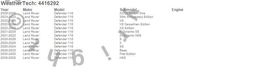 Below is an abbreviated list of applications for the FloorLiner DigitalFit.Defender 110, Land Rover, 2025, 2024, 2023, 2022, 2021, 2020