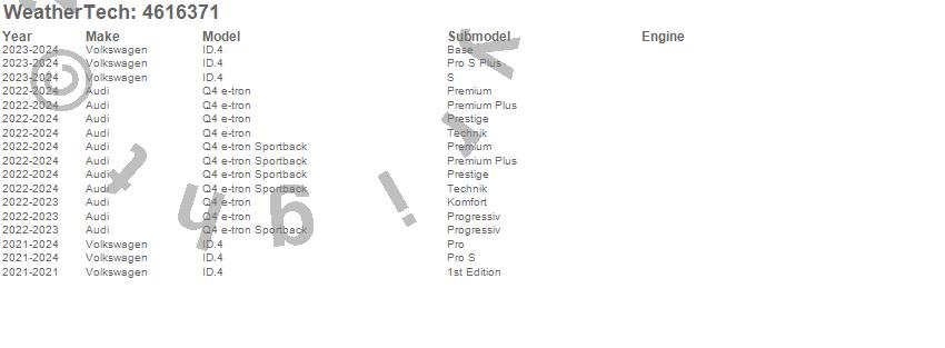 Below is an abbreviated list of applications for the FloorLiner DigitalFit.ID.4, Q4 e-tron, Q4 e-tron Sportback, Audi, Volkswagen, 2025, 2024, 2023, 2022, 2021
