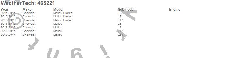 Below is an abbreviated list of applications for the FloorLiner DigitalFit.Malibu, Malibu Limited, Chevrolet, 2016, 2015, 2014, 2013
