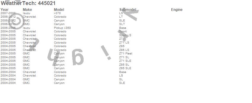 Below is an abbreviated list of applications for the FloorLiner DigitalFit.Canyon, Colorado, i-350, i-370, Chevrolet, GMC, Isuzu, 2012, 2011, 2010, 2009, 2008, 2007, 2006, 2005, 2004