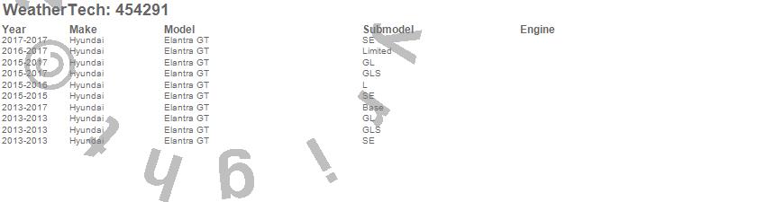 Below is an abbreviated list of applications for the FloorLiner DigitalFit.Elantra GT, Hyundai, 2017, 2016, 2015, 2014, 2013