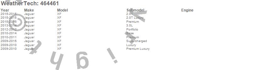 Below is an abbreviated list of applications for the FloorLiner DigitalFit.XF, Jaguar, 2015, 2014, 2013, 2012, 2011, 2010, 2009