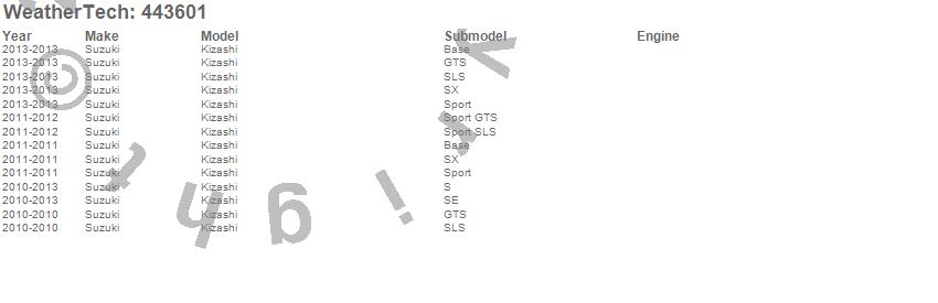 Below is an abbreviated list of applications for the FloorLiner DigitalFit.Kizashi, Suzuki, 2013, 2012, 2011, 2010