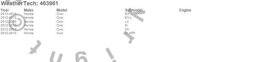Below is an abbreviated list of applications for the FloorLiner DigitalFit.Civic, Honda, 2013, 2012