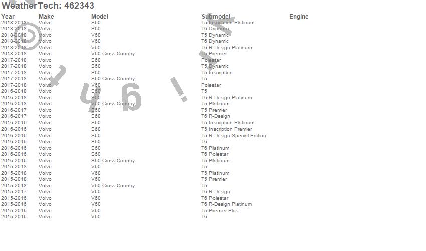 Below is an abbreviated list of applications for the FloorLiner DigitalFit.S60, S60 Cross Country, V60, V60 Cross Country, Volvo, 2018, 2017, 2016, 2015, 2014, 2013, 2012, 2011