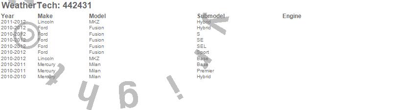 Below is an abbreviated list of applications for the FloorLiner DigitalFit.Fusion, Milan, MKZ, Ford, Lincoln, Mercury, 2012, 2011, 2010