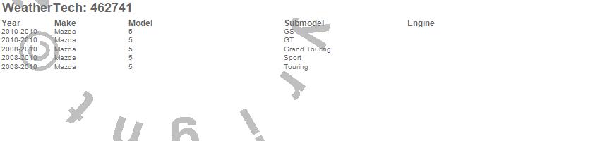 Below is an abbreviated list of applications for the FloorLiner DigitalFit.5, Mazda, 2010, 2009, 2008