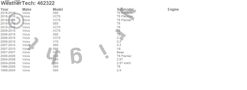 Below is an abbreviated list of applications for the FloorLiner DigitalFit.S80, V70, XC70, Volvo, 2016, 2015, 2014, 2013, 2012, 2011, 2010, 2009, 2008, 2007, 2006, 2005, 2004, 2003, 2002, 2001