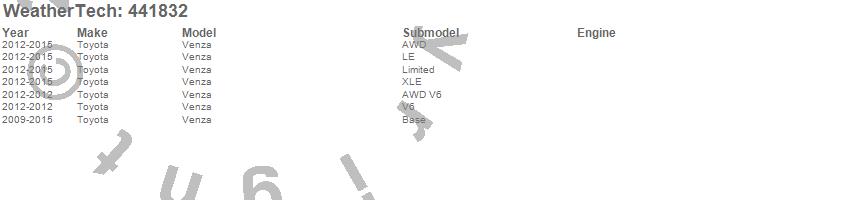 Below is an abbreviated list of applications for the FloorLiner DigitalFit.Venza, Toyota, 2015, 2014, 2013, 2012, 2011, 2010, 2009