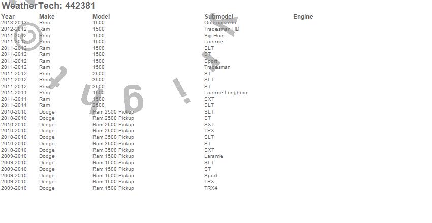 Below is an abbreviated list of applications for the FloorLiner DigitalFit.1500, 2500, 3500, Ram 1500, Ram 2500, Ram 3500, Dodge, Ram, 2013, 2012, 2011, 2010, 2009