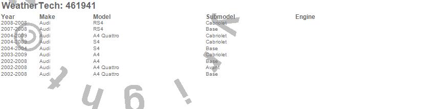 Below is an abbreviated list of applications for the FloorLiner DigitalFit.A4, A4 Quattro, RS4, S4, Audi, 2009, 2008, 2007, 2006, 2005, 2004, 2003, 2002