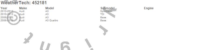 Below is an abbreviated list of applications for the FloorLiner DigitalFit.A3, A3 Quattro, Audi, 2013, 2012, 2011, 2010, 2009, 2008, 2007, 2006