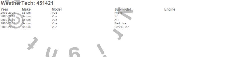 Below is an abbreviated list of applications for the FloorLiner DigitalFit.Vue, Saturn, 2010, 2009, 2008