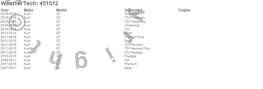 Below is an abbreviated list of applications for the FloorLiner DigitalFit.Q7, Audi, 2015, 2014, 2013, 2012, 2011, 2010, 2009, 2008, 2007
