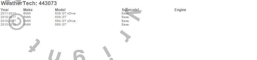 Below is an abbreviated list of applications for the FloorLiner DigitalFit.535i GT, 535i GT xDrive, 550i GT, 550i GT xDrive, BMW, 2017, 2016, 2015, 2014, 2013, 2012, 2011, 2010