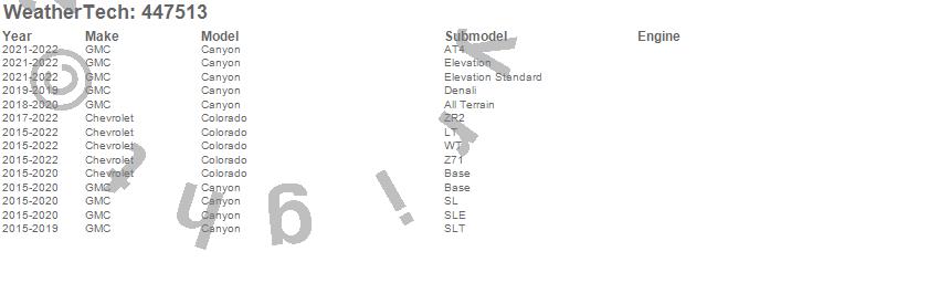 Below is an abbreviated list of applications for the FloorLiner DigitalFit.Canyon, Colorado, Chevrolet, GMC, 2022, 2021, 2020, 2019, 2018, 2017, 2016, 2015