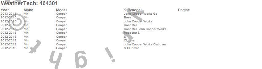 Below is an abbreviated list of applications for the FloorLiner DigitalFit.Cooper, Mini, 2015, 2014, 2013, 2012