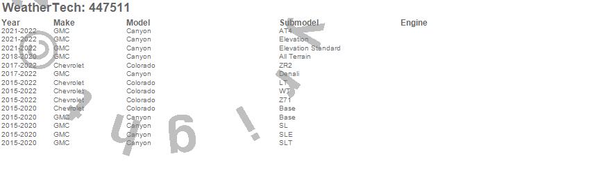 Below is an abbreviated list of applications for the FloorLiner DigitalFit.Canyon, Colorado, Chevrolet, GMC, 2022, 2021, 2020, 2019, 2018, 2017, 2016, 2015