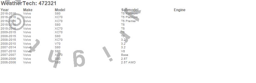 Below is an abbreviated list of applications for the FloorLiner DigitalFit.S80, V70, XC70, Volvo, 2016, 2015, 2014, 2013, 2012, 2011, 2010, 2009, 2008, 2007, 2006