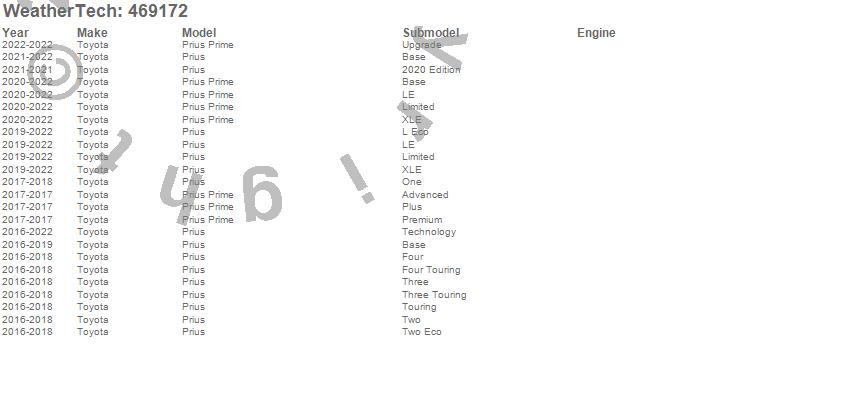 Below is an abbreviated list of applications for the FloorLiner DigitalFit.Prius, Prius Prime, Toyota, 2022, 2021, 2020, 2019, 2018, 2017, 2016