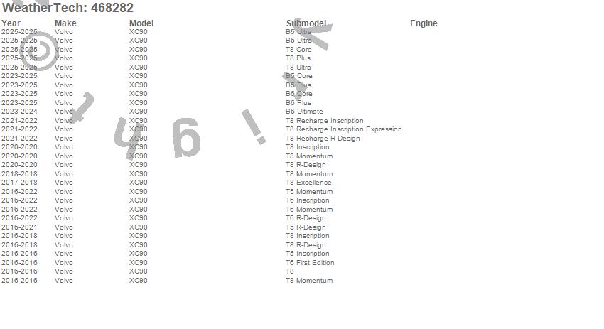 Below is an abbreviated list of applications for the FloorLiner DigitalFit.XC90, Volvo, 2026, 2025, 2024, 2023, 2022, 2021, 2020, 2019, 2018, 2017, 2016