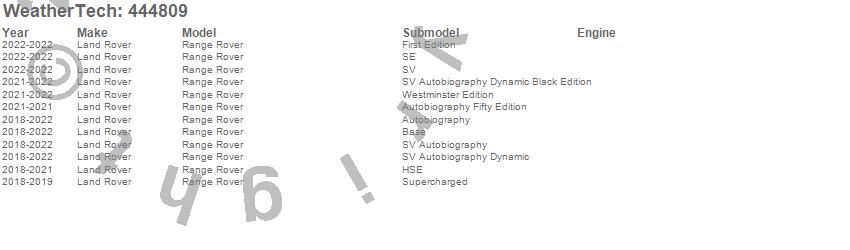 Below is an abbreviated list of applications for the FloorLiner DigitalFit.Range Rover, Land Rover, 2022, 2021, 2020, 2019, 2018