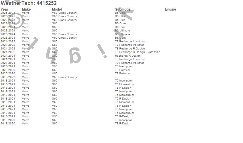 Below is an abbreviated list of applications for the FloorLiner DigitalFit.S60, V60, V60 Cross Country, Volvo, 2025, 2024, 2023, 2022, 2021, 2020, 2019