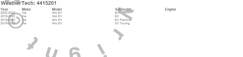 Below is an abbreviated list of applications for the FloorLiner DigitalFit.Niro EV, Kia, 2022, 2021, 2020, 2019