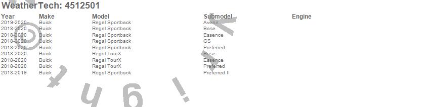 Below is an abbreviated list of applications for the FloorLiner DigitalFit.Regal Sportback, Regal TourX, Buick, 2020, 2019, 2018