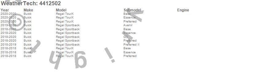 Below is an abbreviated list of applications for the FloorLiner DigitalFit.Regal Sportback, Regal TourX, Buick, 2020, 2019, 2018
