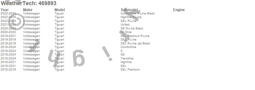 Below is an abbreviated list of applications for the FloorLiner DigitalFit.Tiguan, Volkswagen, 2024, 2023, 2022, 2021, 2020, 2019, 2018